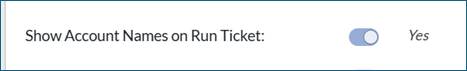 - On Setup > Account screen, if “Show Account Names on Run Ticket” is NO/disabled, it still printed the Account Name on the run ticket. This issue has been resolved.